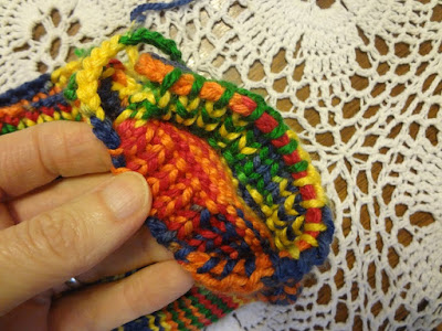 ...all sorts of thoughts about what it could become...just unravel it and use the yarn...maybe just keep it and clean it up...but mostly what my mind's eye saw in it was one of those narrow sort of back/neck pillows...so another pillow...of course... ...so I went over to the pillow section of the thrift store...and found the perfect sized pillow ($1.50)... ...I draped the scarf over the pillow form...and it's a couple of feet too long... ...so I unpicked the seam... ...and started unraveling... ...the yarn itself is very nice...fluffy and soft... ...there was a lot of fuzz during the unraveling...but I ended up with a good-sized ball of yarn...I'll put it into the 'stash'...you know for whenever I happen to need just a couple of feet worth of nice soft burgundy yarn...haha... ...and then I picked up the live stitches...and put them onto some knitting needles... ...and bound it off... ...and then I had a still fuzzy/nappy rectangle the size of my pillow... ...so I got out my fabric shaver to give it a bit of a haircut...(btw...the colour of this photo is about right...the next two...not so much)... ...here's an off colour fuzzy before... ...and an even more off colour but neat after... ...I had to empty and clean the shaver thingy... ...more than once... ...but I'm quite happy with the result... ...now to cover the light grey pillow so that it doesn't show through the knit stitches...I happen to have one sleeve and a bit of the burgundy sweatshirt material leftover from my sweatshirt-to-sweatpants conversion project last week...so of course I'm using that instead of buying any more burgundy material... ...a final fitting and then stitching two of the side seams of the knitted cover... ...I made the pillow cover and had just that little bit of burgundy leftover... ...the covered pillow... ...and I just stitched the last side in place over the pillow form... ...that was easy... ...ta-daaa!...the finished pillow... ...now I have three burgundy pillows on the sofa (all different shades)... ...I love it...it'll be a perfect little back support... ...and it goes well with the other two burgundy pillows... ...on either side...